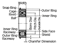 这种进口轴承,除开放式之外,还有加钢板防尘盖的轴承,加橡胶密封圈的轴承,或者在外圈径上附有止动环的轴承。一般多采用钢板冲压保持架。